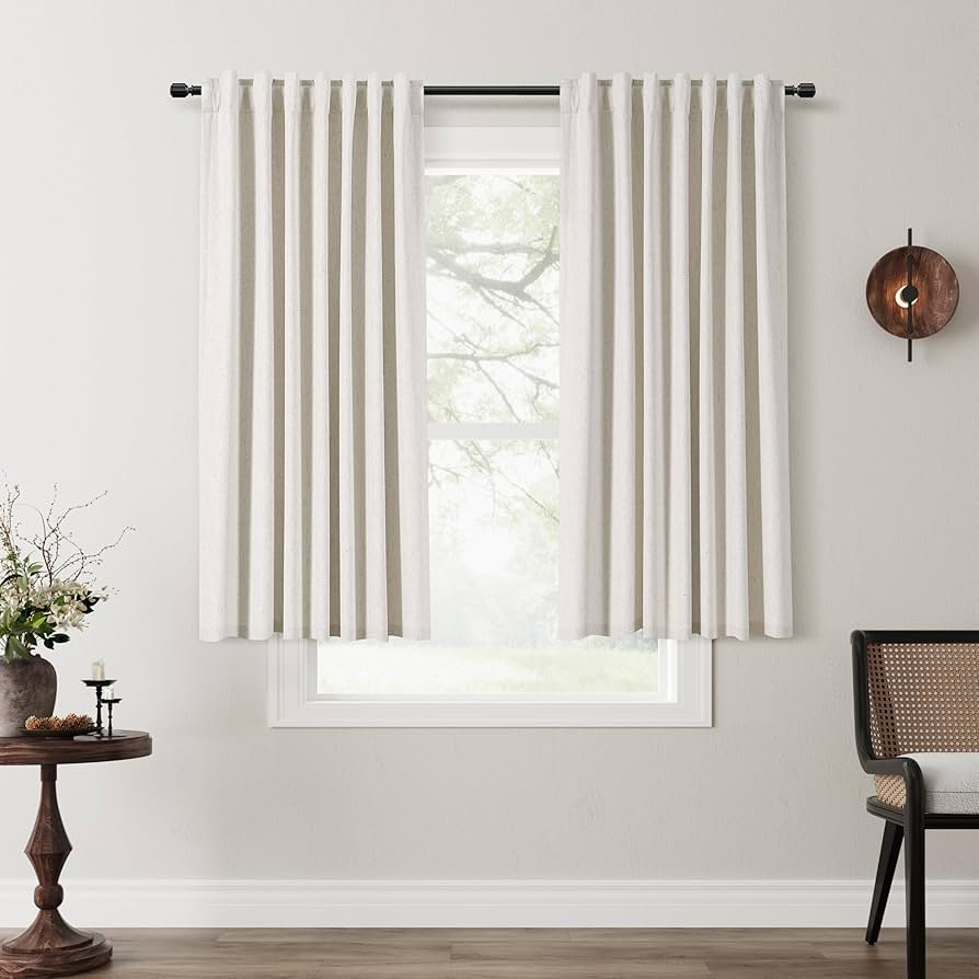 A set of custom-made blackout curtains that block all light for a dark and comfortable room.